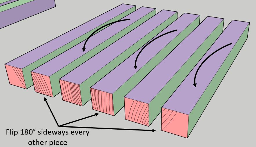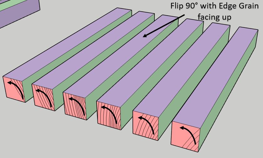 6.) Now, you can proceed with flipping each block 90 degrees to have the edge grain facing up.